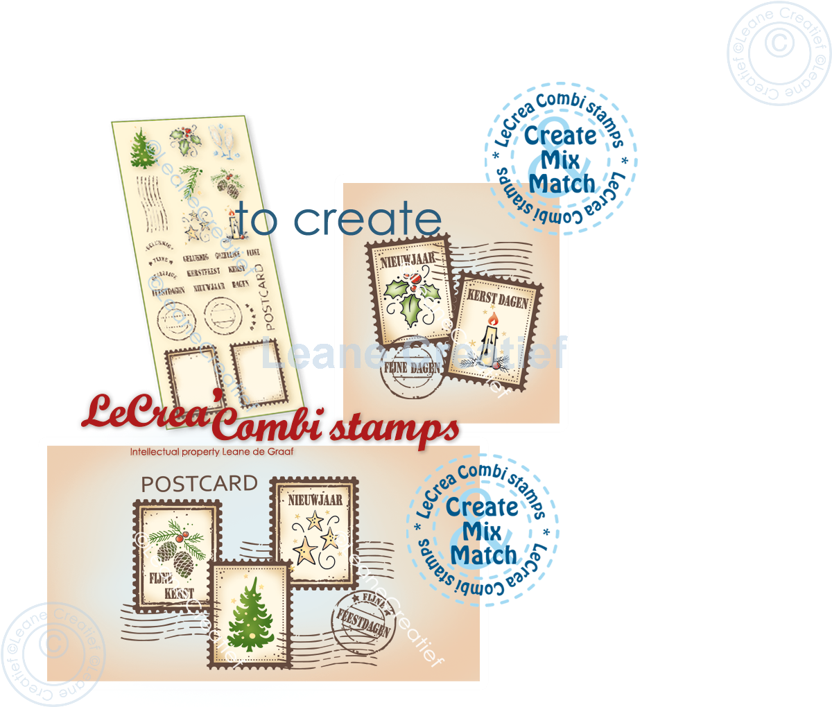 LeCreaDesign® combi clear stamp Post stamps Christmas NL 9 different , 3x4 cm.
