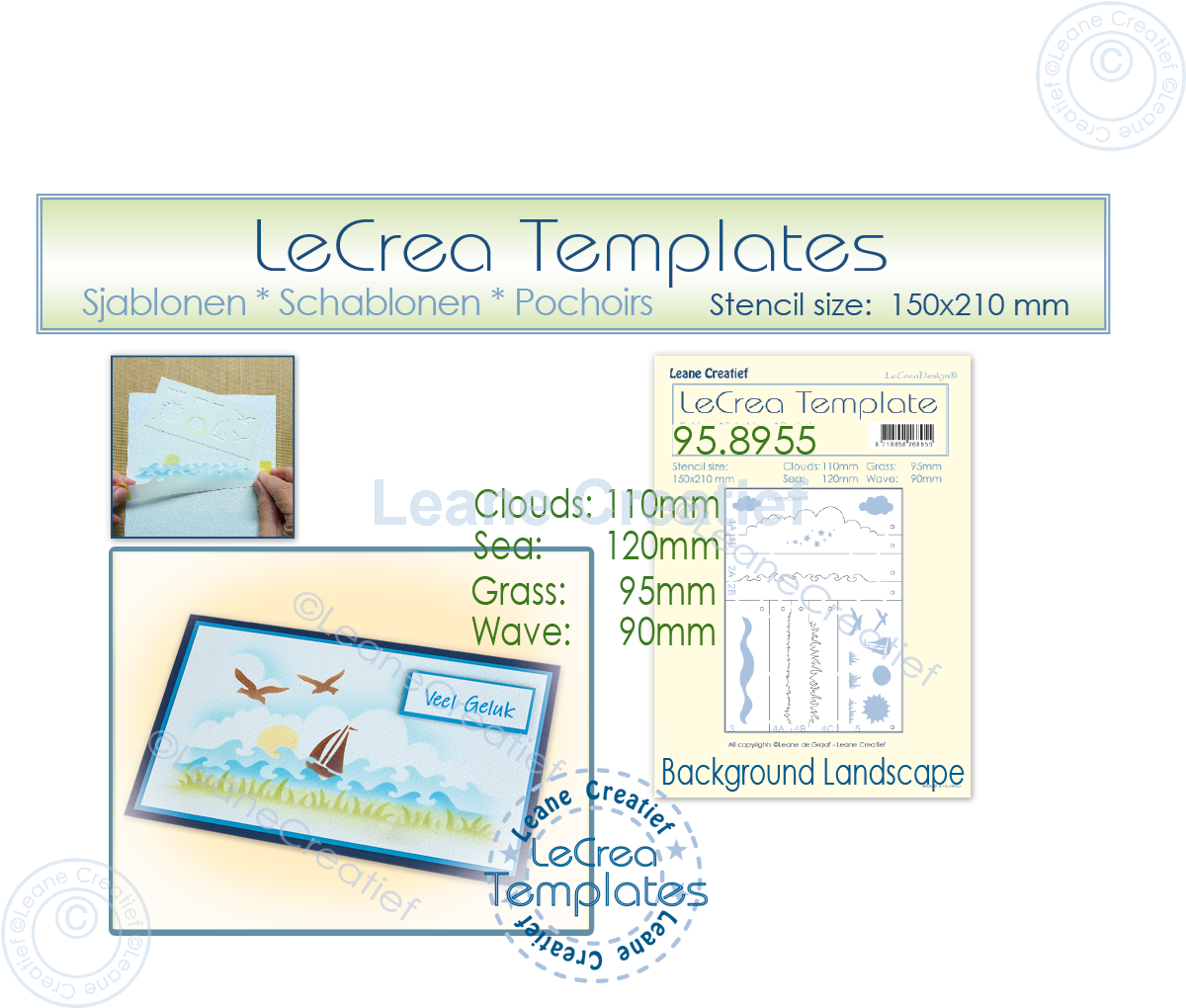 pochoir 150x210mm, des Nuages 110mm, Mer, 120mm, Herbe 95mm, Vagues 90mm