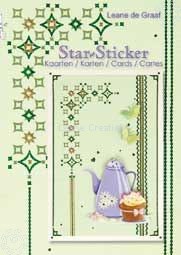 Star-Sticker Karten:Muster mit Star-Stickern zu kleben ist einfach und vor allem unkompliziert. Bei diesen eleganten Karten spielen diese Sticker eine wichtige Rolle. Mit den beigefügten Schemata in Originalgröße werden die Muster ganz einfach auf die Auflegekarte übertragen. Die Tee- und Cupcakemotive geben Ihrem Werk den letzten Schliff. Sie werden überrascht sein!