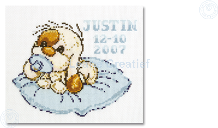 LeCreaDesign® Mylo & Friends® cross stitch kit•Instructions•Pattern •Complete alphabet•Aïda fabric 28x32cm•11 stranded cotton•needle Mylo baby #4