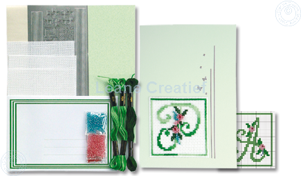 LeCreaDesign® Alphabet point de croix kit de cartes avec perlesComplet pour faire 6 cartes point de croix: •Manuel & alphabet complet•3 11x17cm Toile Aïda•3 fils à broder•3 couleurs rocailles•6 cartes•3 feuilles adhésive double face•6 enveloppes•1 sticker