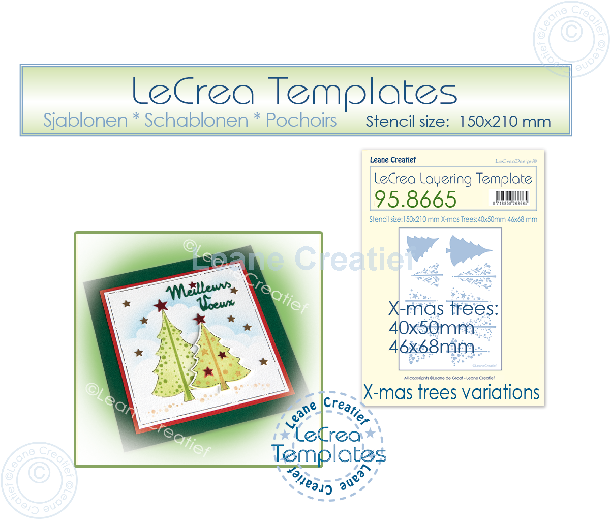 pochoir 150x210mm, Arbres de Noël: 40x50mm / 46x68mm