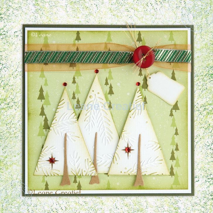 Gebruik de embossingfolder om het papier van een mooi motief te voorzien. Knip hier de driehoeken uit, om de kerstbomen te maken. Eenvoudig, maar met een leuk effect.